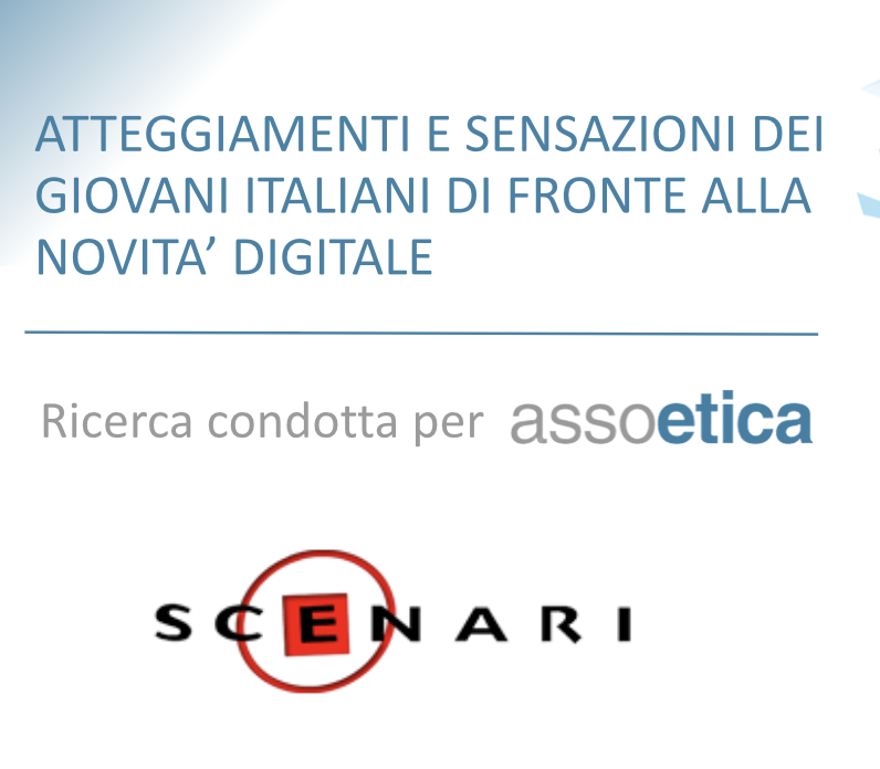 La ricerca Atteggiamenti e sensazioni di fronte alla novità digitale dei giovani italiani, condotta su un campione rappresentativo della popolazione italiana compresa nella fascia di età 18-30 anni, è stata curata per Assoetica dall’istituto Scenari.