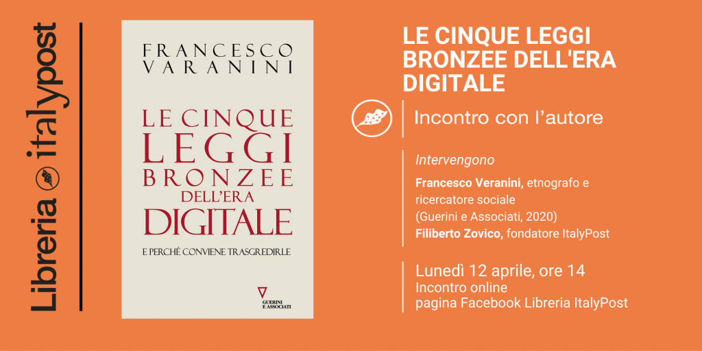 Incontro con l’autore delle ‘Cinque Leggi Bronzee dell’Era Digitale’ presso Libreria ItalyPost, lunedì 12 aprile 2021 ore 14