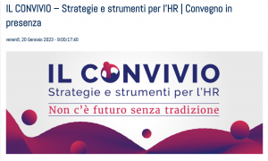 Il Convivio è l’evento dedicato ai temi delle Risorse Umane organizzato dalla casa editrice ESTE e dalla sua rivista Persone & Conoscenze: con mio dispiacere, nel 2022 il Convivio non ha avuto luogo. Eppure eravamo riusciti a proporre il Convivio, in versione online, nei difficili tempi determinati dal Covid. Ma ecco di nuovo il 20 gennaio 2023 il nostro incontro. Per quanto mi riguarda, il congedo. Nel corso dell’incontro verrà annunciato il passaggio di consegne. Dopo diciannove anni, lascio la rivista che ho fondato nel 2004, Persone & Conoscenze, e quindi, dopo diciassette anni, anche gli eventi connessi alla rivista. Nel 2006 iniziano gli incontri connessi alla rivista, con iil titolo Risorse Umane & non Umane. Nel 2010 l’incontro milanese prende il nome Convivio.