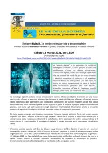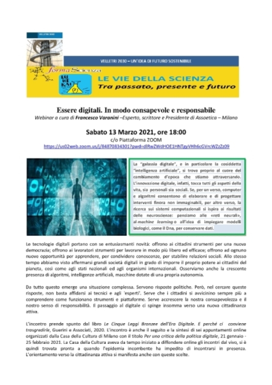 Essere digitali. In modo consapevole e responsabile. Sabato 13 Marzo 2021, ore 18 Incontro organizzato dall’associazione Velletri 2030