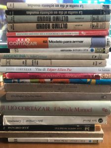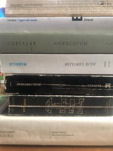 Visto il titolo dato da Zagaria al podcast, credo che in qualche modo parleremo anche di letteratura ispanoamericana. Per chi non lo sapesse: Rayeula è il titolo del romanzo di Julio Cortázar, cui dedico attenzione nel mio Viaggio letterario in America Latina. Così intanto ho tirato giù dallo scaffale varie edizioni di Rayuela in diverse lingue; ed altri libri di Cortázar: qualcuno al momento non lo trovo e la cosa mi indispettisce molto.
