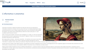 L’articolo, apparso su MagIA, rivista digitale promossa da SIpEIA – Società Italiana per l’Etica dell’Intelligenza Artificiale, tratta di un argomento che mi sta molto a cuore – non solo perché l’Informatica umanistica è stata oggetto del mio del mio insegnamento universitario.