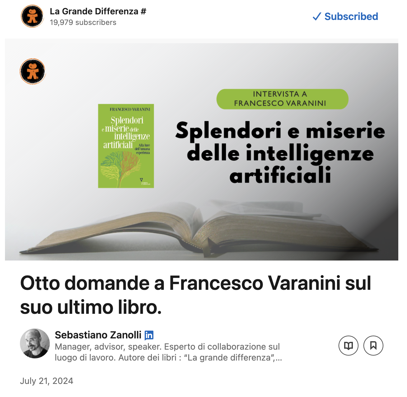 L’intervista appare sulla newsletter Linkedin La Grande Differenza, 21 luglio 2024