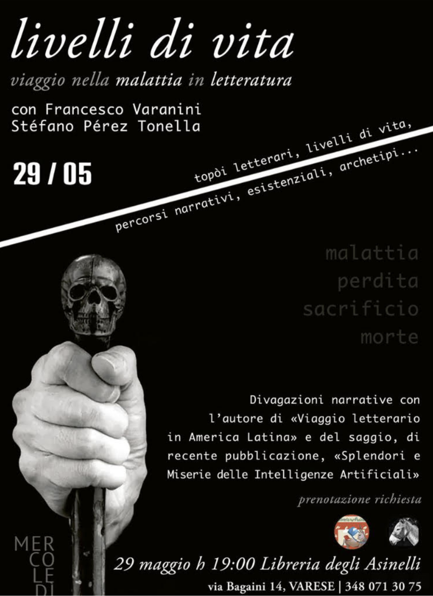 Stéfano mi propone di conversare attorno alla letteratura, non arte in senso lato. Chi sarà non noi a Varese la sera del 29 vedrà come si sviluppa il dialogo. Inutile prevederlo ora o porre limiti.