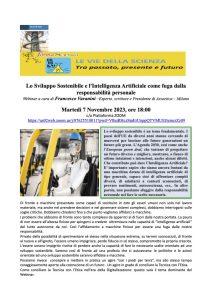 Privato della possibilità di sperimentare sé stesso nella situazione estrema, su terreni sconosciuti, di fronte al nuovo e all’ignoto, l’essere umano impigrisce, perde fiducia in sé stesso, compromette la propria crescita. L’essere umano impigrito rischia di perdere anche la capacità di fare le necessarie scelte orientate ad uno sviluppo sostenibile. Saremo così di fronte ad una profezia che si autoavvera: le politiche e le azioni orientate ad uno sviluppo sostenibile saranno affidate a macchine.
