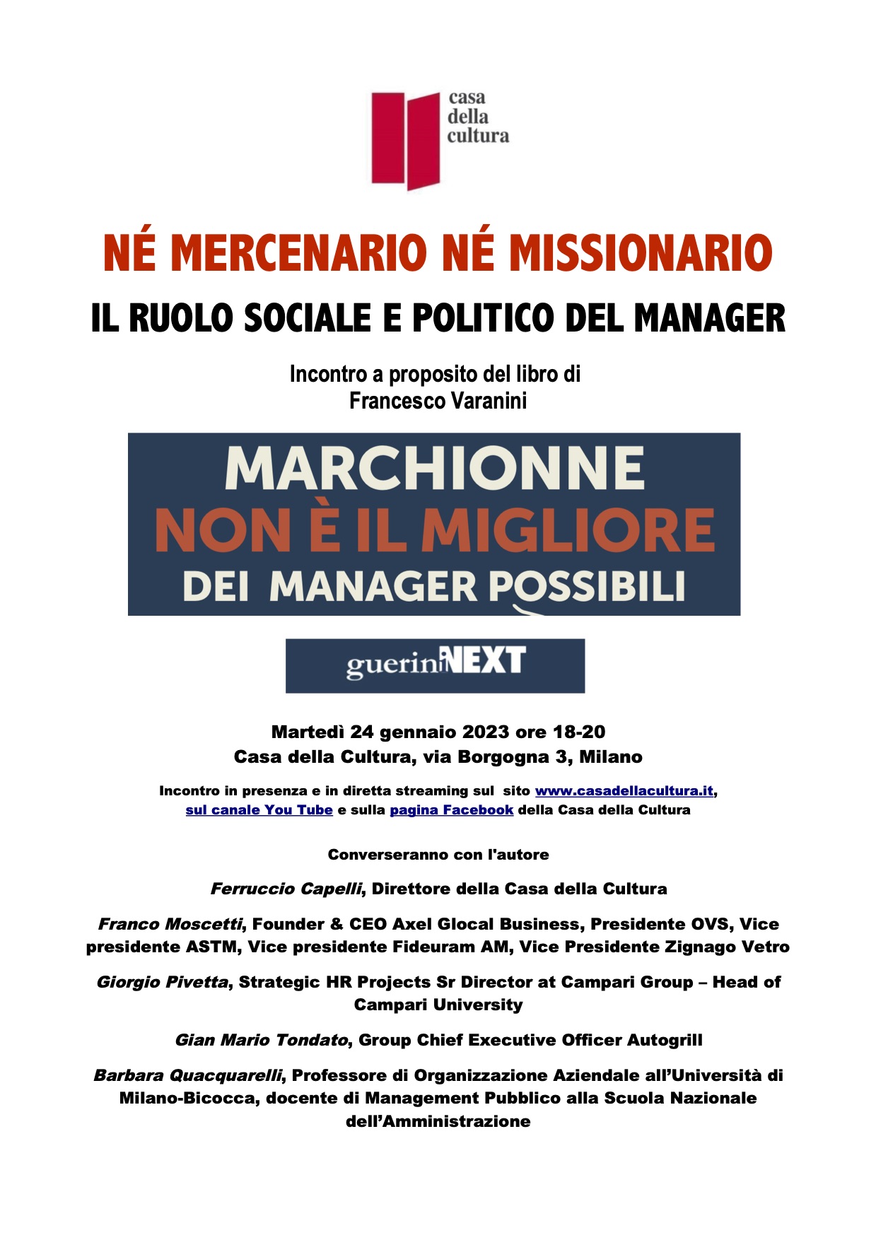 Ci incontreremo di persona, dal vivo martedì 24 gennaio 2023, dalle 18 alle 20, alla Casa della Cultura di Milano, via Borgogna 3 (San Babila).