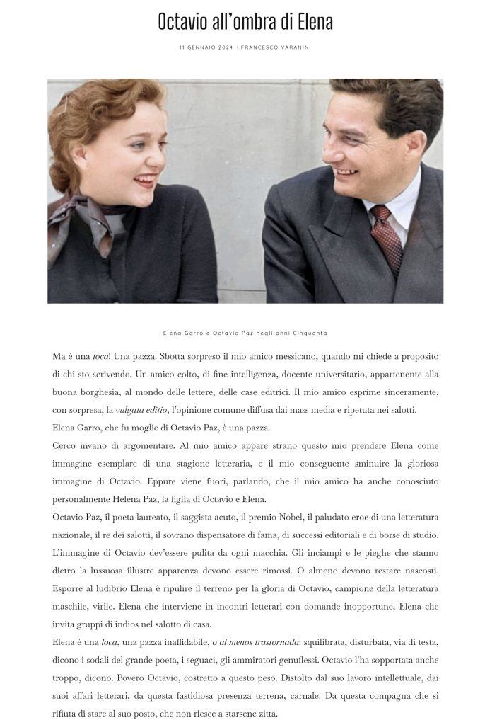 Octavio all’ombra di Elena. Articolo apparso sulla rivista ‘Tutte quelle cose’, 11 gennaio 2024