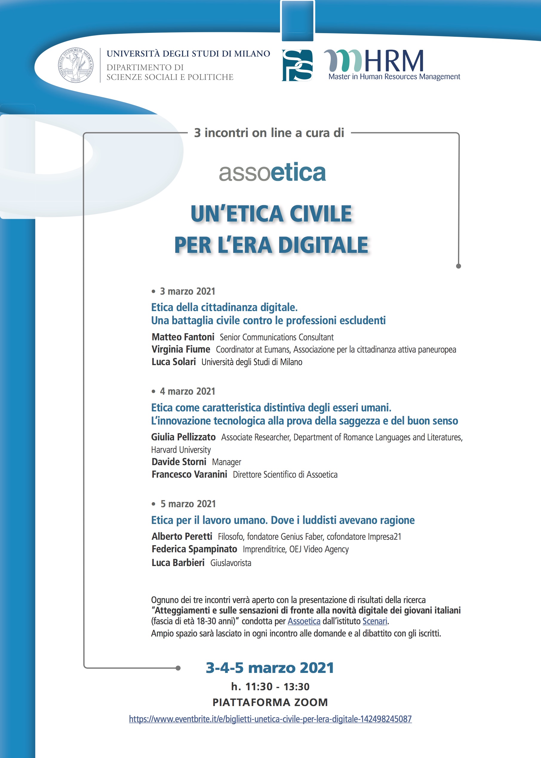 Assoetica, associazione di cui sono Direttore Scientifico, organizza tre incontri in collaborazione con l’Università Statale di Milano, Dipartimento di Scienze Sociali e Politiche. 3, 4, 5 marzo 2021 ore 11.30-13.30.